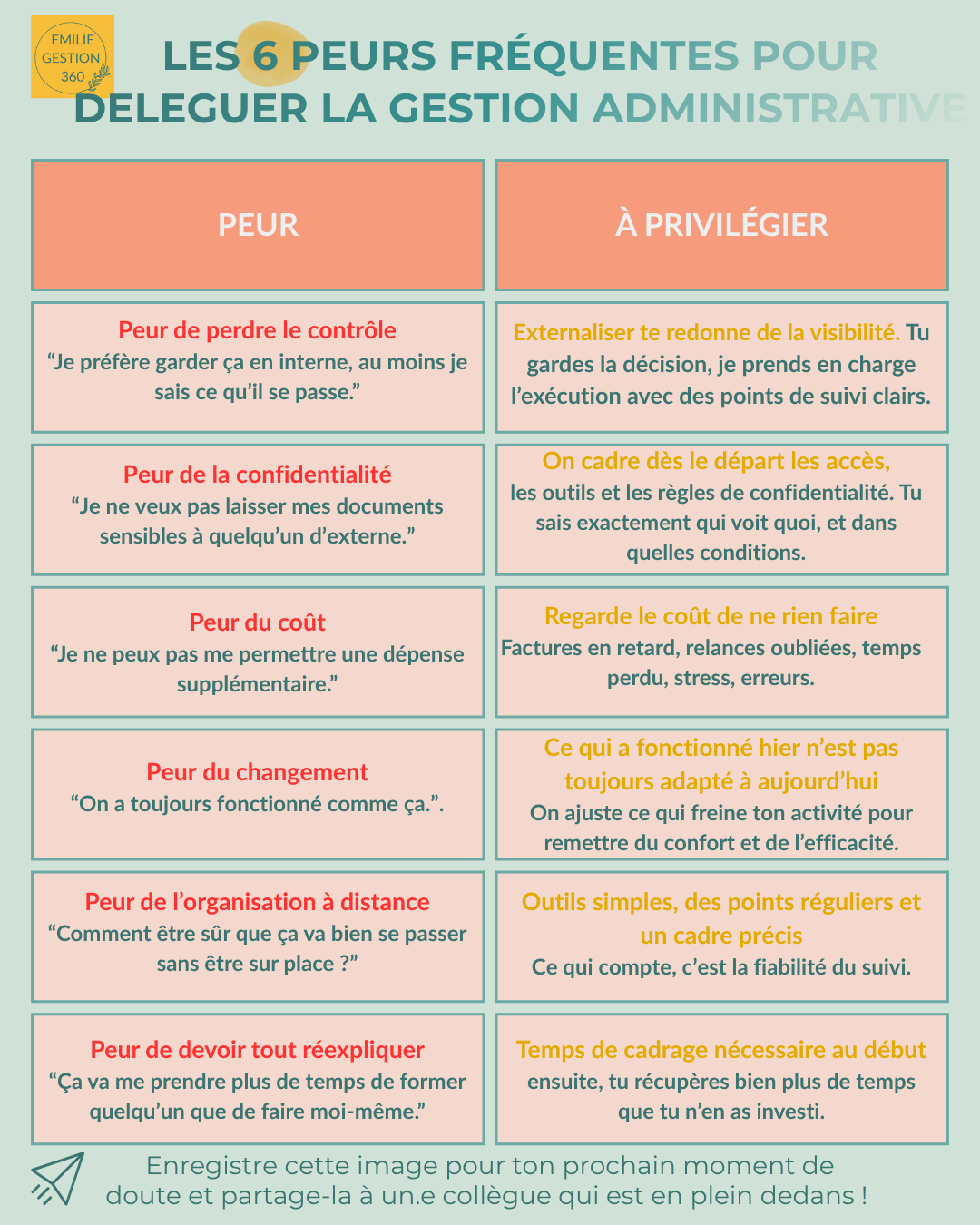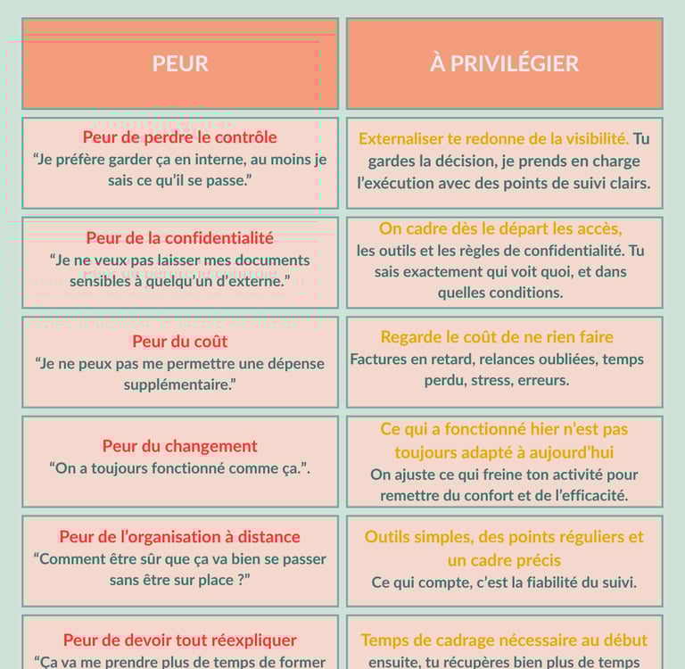 Vous avez peur de déléguer? Voici les 6 peurs les plus courantes en tant que dirigeant d'entreprise et comment je vous aide à passer au dessus en tant qu'office manager externalisée.
